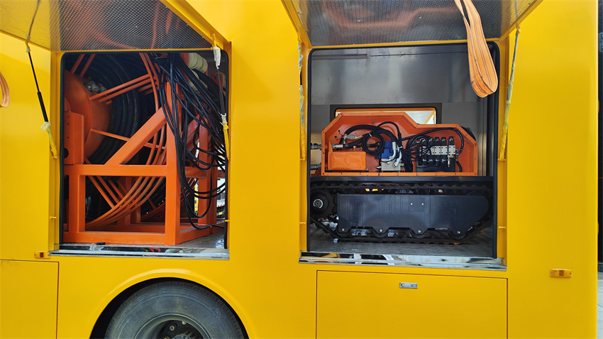 應(yīng)急排水子母式搶險車排澇車發(fā)車廣西,是有廣西某水利局定制的這臺車,此車排水量一小時達(dá)到3000立方,配機器人排水裝備,配備60米液壓油管驅(qū)動,可以到達(dá)人員車輛無法到達(dá)的危險區(qū)域,機器人排水裝備小巧玲瓏,坦克式履帶前進(jìn)方式,行駛距離60米,安全便攜,車后配液壓升降尾板,方便機器人裝備上下車,如需要更詳細(xì)的資料請聯(lián)系本站。車輛部分圖片如下圖所示