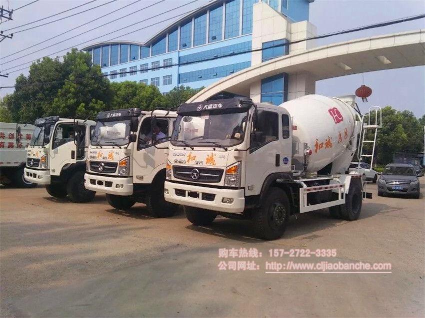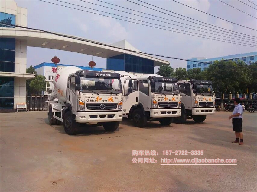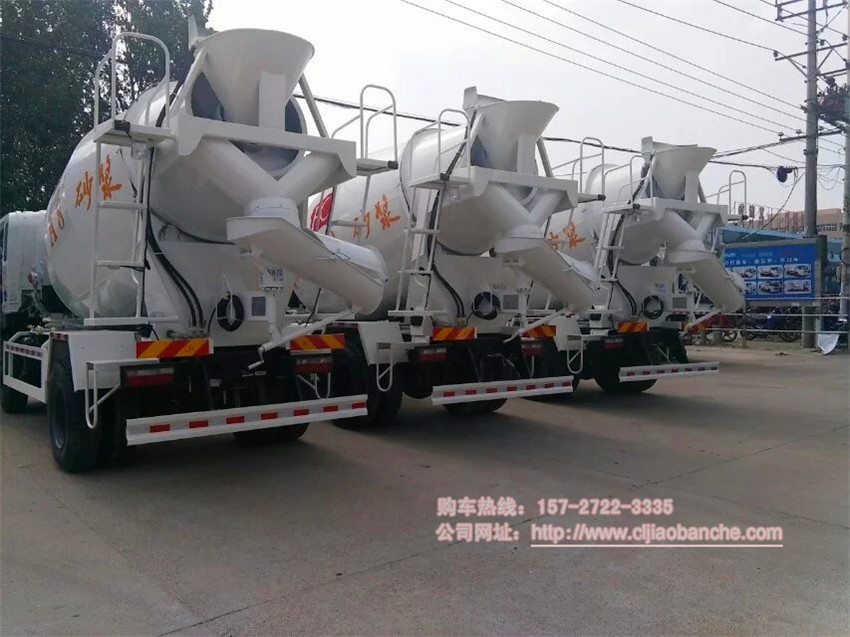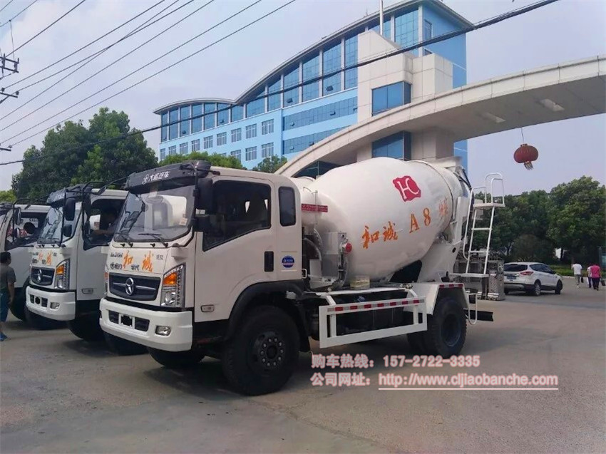 和誠集團在我廠訂購3臺大運6方攪拌車,我廠大門發車,合影留念