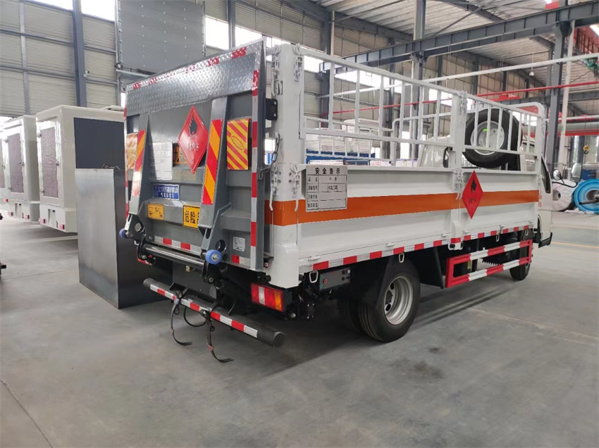 外板采用1.2MM厚冷軋板,內襯為矩形管骨架牢靠穩定,底板為3mm板材,上鋪有靜電膠皮,有靜電帶、滅火器、防火罩。整車國標反光標示及警告標志??蛇x擇車型顏色,可選裝液壓尾板。