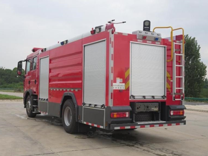 豪沃單橋水罐消防車,整車由二類汽車底盤、罐體、消防泵、管路、儀表電路系 統等部件組成,原裝雙排駕駛室可乘坐2+4人;該車為外露罐結構,車身前部為器材 箱構成,中部為水罐,尾部為泵房。水罐為碳鋼材質,內部噴涂環氧底漆和環氧瀝青