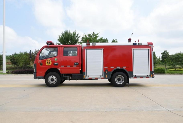 東風小多利卡水罐消防車是由二類汽車底盤、水罐、水泵、管路、儀表電路系統等 部件組成,該車裝配鋁合金后爬梯(可拆卸),泵房在整車尾部,罐體為鋼板焊接式, 罐體材質為優質碳鋼板,罐體內部做防腐處理,載水2.5方。該車裝備 CB10/20 消防泵,