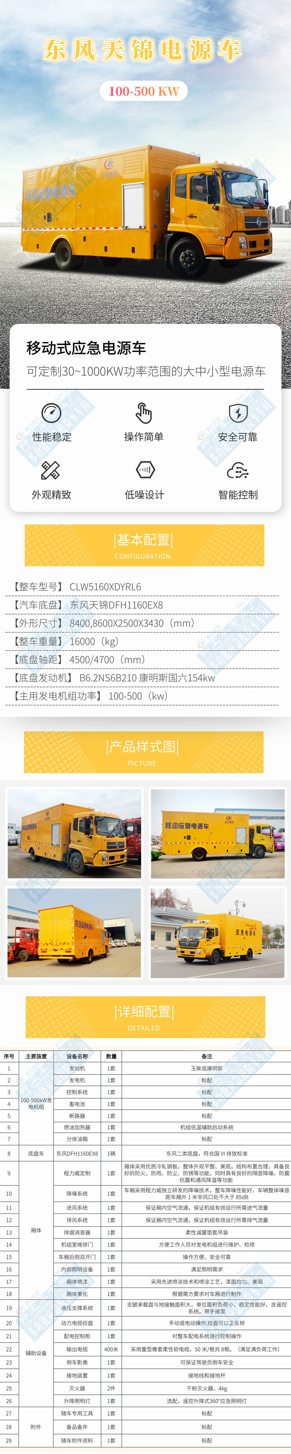 程力抑塵車專業廠-多功能應急救險車廠擁有專業的應急電源車技術團隊,從業經驗均超過5年以上,可根據客戶應用需求量身定制應急電源車車型方案,滿足實際使用中的各項需求。我司可提供30kw-1000KW的電源車、2000KW的半掛電源車、30-500KW的拖掛式移動電站等應急發電車產品設備,詳情咨詢銷售經理。