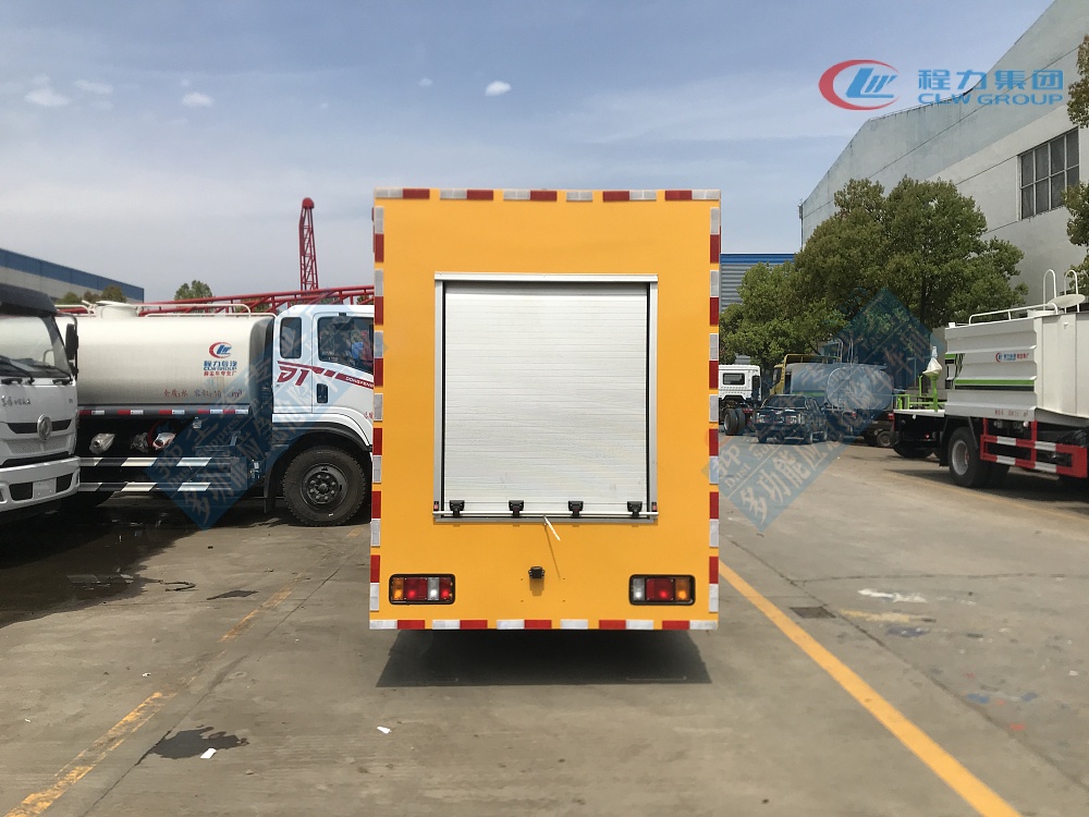 救險車廂體外部鋼材為優質冷軋鋼板,內襯優質冷軋鋼板折彎骨架,配備多個高端鋁合金卷簾門,工藝**,強度牢固。廂體為全密封結構,具備運輸、防雨、防腐、防火、防銹要求。車廂內頂分布多個照明燈,給夜間工作或維修作業時提供充分光線。發電機組進排風消聲處理,消聲器做降噪處理。工作門下裙圍處設有隱藏式翻轉梯,與車廂底板框架連接,方便拿取物品。
