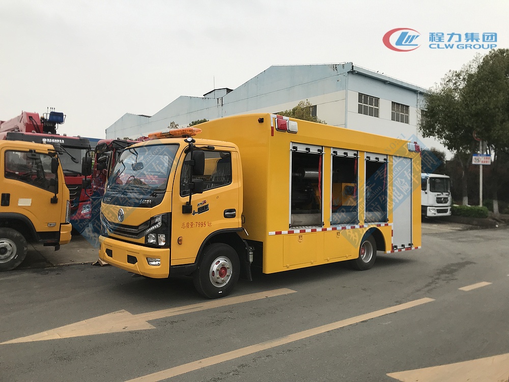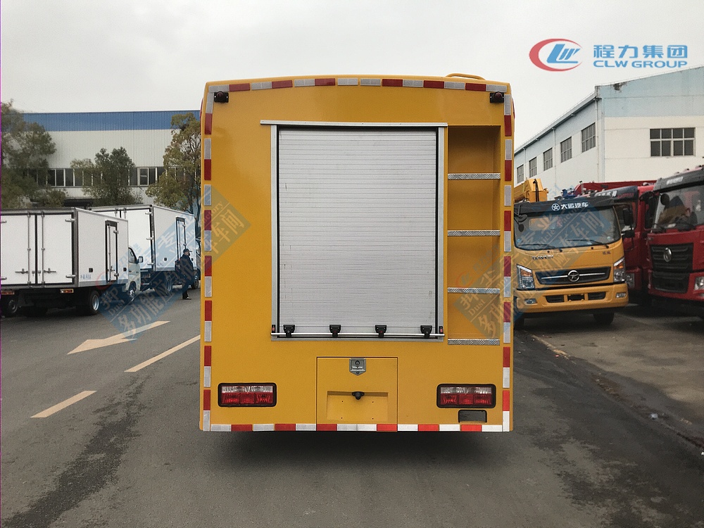 選裝配置:選裝行李架、爬梯、車頂工作臺;選裝不同形狀、結構的警示燈;選裝中隔斷(可選擇開門)、車身兩側可選開上掀門、盲窗、側開門;花紋鋁板;加裝設備工具柜、配電箱、發電機組、水泵、電焊機、空壓機等線路安裝外接電源系統、(室內燈光照明、探照燈、高桿照明燈等);繞線盤,還可根據用戶不同需求加裝不同的維修搶險設備、車身制作專用圖案或標識。