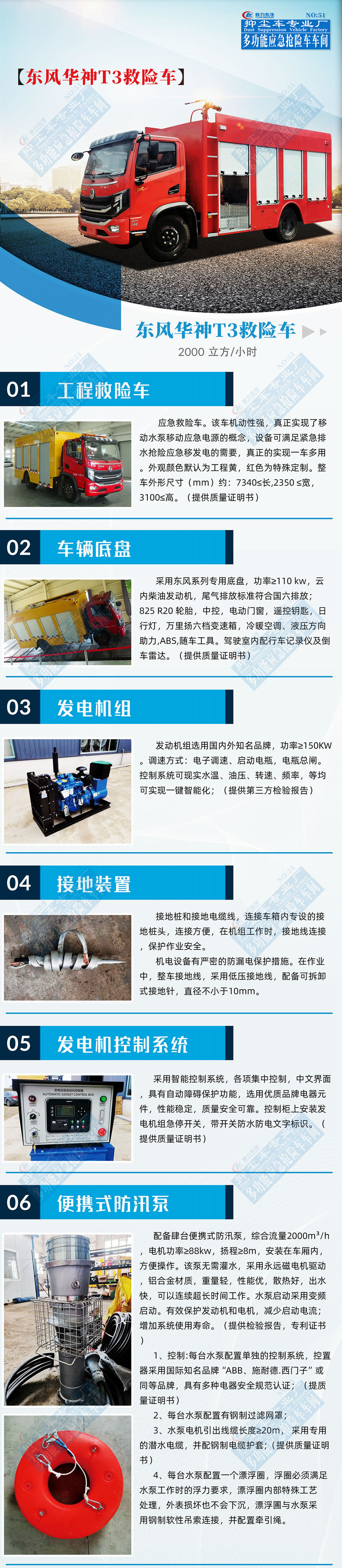 工程救險車配柴油發電機組、移動水泵、控制系統等,可滿足深水區域搶險救援工作,保障城市防汛排水通暢,提高防汛排澇能力,確保汛期群眾生命財產安全和城市道路正常運轉,真正實現了移動水泵的概念,廣泛適用于城市消防領域,排澇、抗旱、礦井搶險、森林消防、高速公路橋梁底涵排水、灌溉等領域。常見應用于無固定泵站,無電源地區排水,城市道路、公路、地鐵隧道排水,消防應急供水防洪搶險,淹沒地區排水,江河湖泊、水庫、海洋水環境治理,農業應急抗旱供水、臨時調水,地下水管爆裂,企業工廠排水排污,特別適用于城市內澇排水搶險。