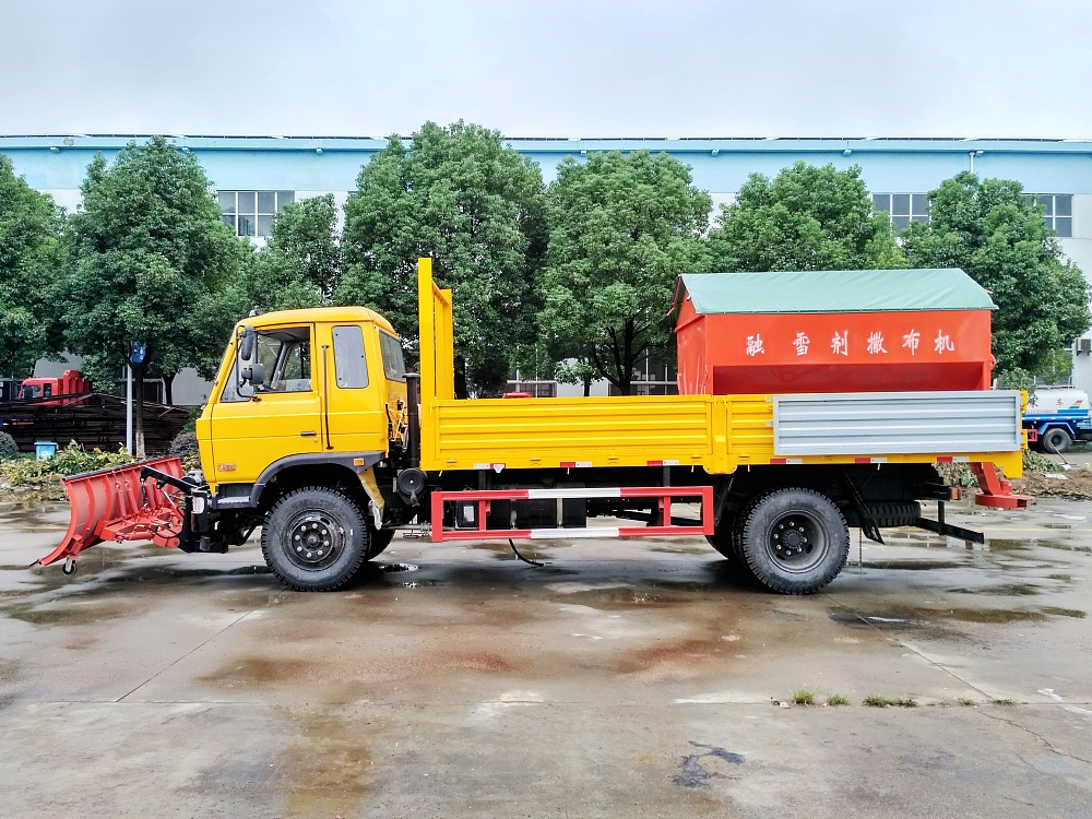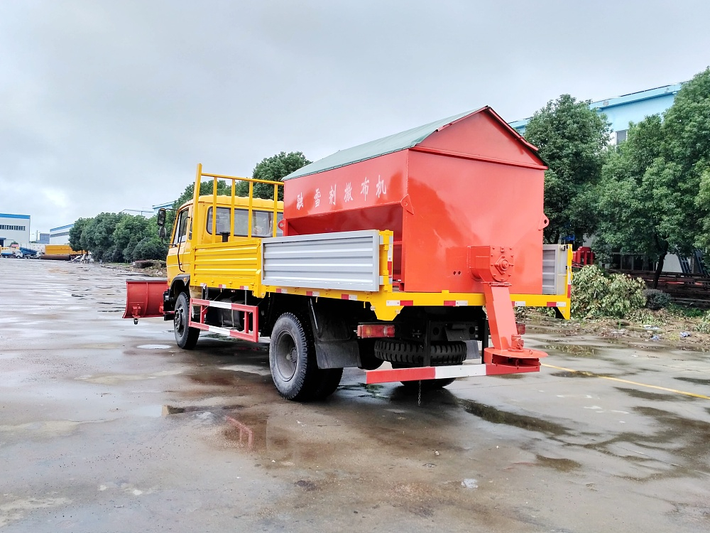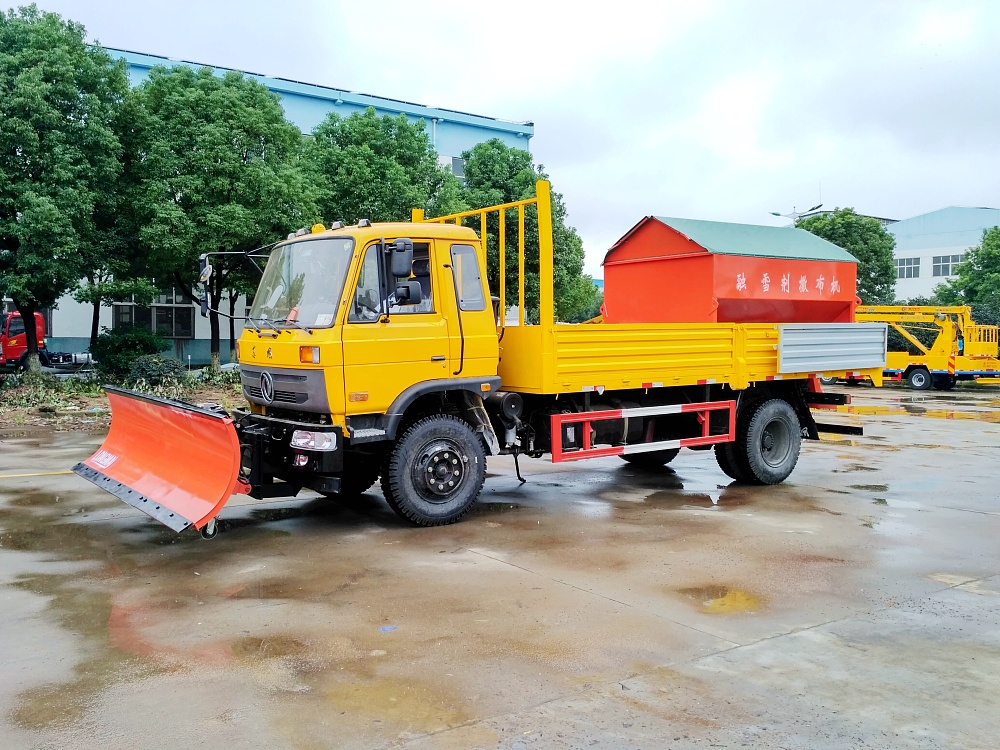 東風145多功能除雪撒布鏟雪車的用途是清除道路上的冰雪,廣泛使用于高等級公路、城市道路、機場、廣場、風景區道路的除雪、融雪、除冰作業,相對于人工除雪,使用機械除雪具有更優的時效性,大幅提高除雪效率,減少人工勞動強度。使用東風145多功能除雪撒布鏟雪車可以在冬季期間投入它們來確保道路上冰雪的清除以及行車的安全。除雪車安裝的推雪鏟或掃雪滾刷具有越障功能,能夠很好的處理各種路面的雪和冰,如浮雪,薄雪,薄冰等,同時它可以在凹凸不平的路面行駛,作業及回避路障,工作效率高。