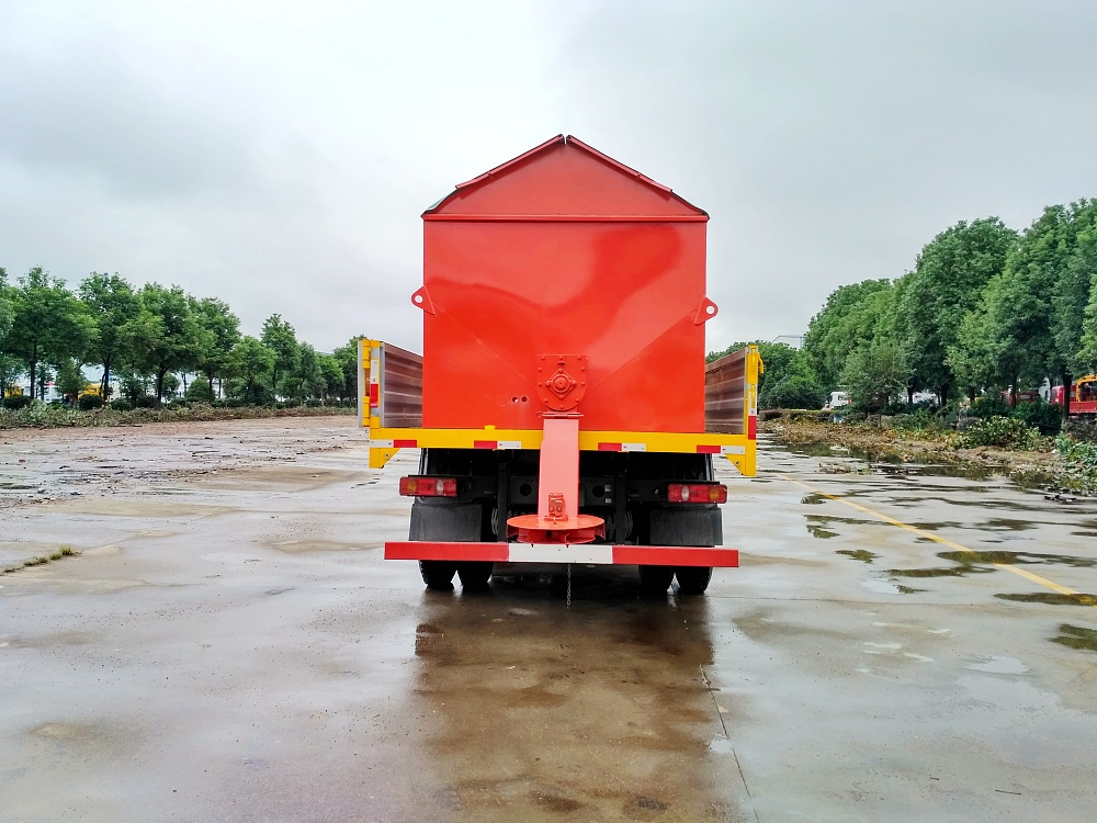 融雪劑撒布機產品性能特點說明: 1、具有撒布鹽、融雪劑等多種功能;2、撒布寬度、撒布量與行駛速度智能自動控制,計量穩定、準確、可靠;3、采用碳鋼板或不銹鋼機構,三級防腐處理;4、動力組選用國內知名品牌發動機;5、撒布量和撒布寬度的設置可直接在駕駛室內操作;6、撒布機螺旋輸送或皮帶輸送,操作方便,性能可靠;7、撒布機箱體上部安裝活動濾網,避免了大顆粒機雜物進入設備內,確保設備安全;8、料斗上防雨罩可保證整機在雨雪天正常工作;