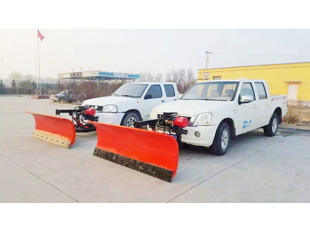 多功能皮卡安裝推雪鏟設備的用途是清除道路上的冰雪,廣泛使用于高等級公路、城市道路、機場、廣場、風景區道路的除雪、融雪、除冰作業,相對于人工除雪,使用機械除雪具有更優的時效性,大幅提高除雪效率,減少人工勞動強度。使用多功能皮卡安裝推雪鏟設備可以在冬季期間投入它們來確保道路上冰雪的清除以及行車的安全。除雪車安裝的推雪鏟或掃雪滾刷具有越障功能,能夠很好的處理各種路面的雪和冰,如浮雪,薄雪,薄冰等,同時它可以在凹凸不平的路面行駛,作業及回避路障,工作效率高。