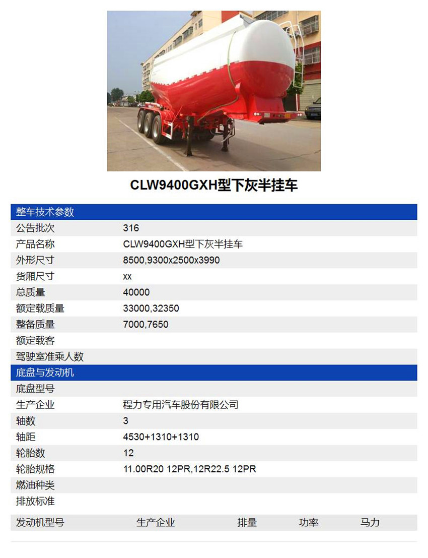 | 車輛名稱: | 程力牌粉粒物料運車半掛車 | 中文品牌: | 程力牌粉粒物料運車半掛車 |